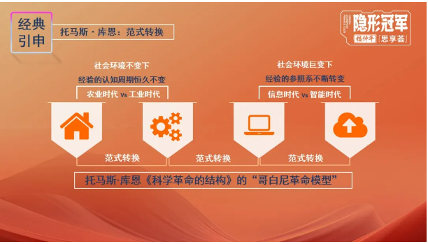 但是經(jīng)驗(yàn)是對(duì)過往的總結(jié)歸納,范式轉(zhuǎn)換(時(shí)代轉(zhuǎn)變)下社會(huì)環(huán)境發(fā)生巨大非連續(xù)性變化時(shí),經(jīng)驗(yàn)就很難建立持續(xù)的有效認(rèn)識(shí)。所以農(nóng)耕文明的知識(shí)體系無(wú)法解決工業(yè)時(shí)代的全新問題,工業(yè)時(shí)代的知識(shí)無(wú)法解決數(shù)字時(shí)代的全新問題,更不能解決人工智能時(shí)代所面對(duì)的各種問題。