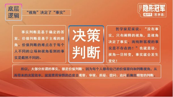 所以,比“事實(shí)”更重要的,是對(duì)事實(shí)的認(rèn)知和運(yùn)用抽象邏輯思考的方式。創(chuàng)業(yè)者在經(jīng)營(yíng)企業(yè)的過程中,要學(xué)會(huì)用“問題視角”去思考分析,用審慎的態(tài)度去觀察、審視、質(zhì)疑、提問、追問后做出明智的判斷。