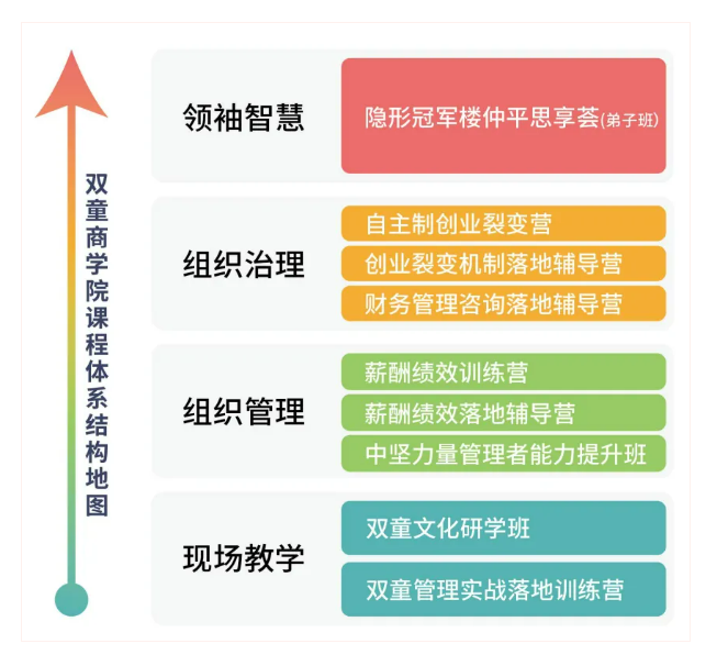 3)組織治理模塊:《自主制創(chuàng)業(yè)裂變營》專注于組織機制創(chuàng)新,幫助學員輸出一套企業(yè)組織創(chuàng)新方案,激發(fā)個體活力,推動企業(yè)裂變式增長。