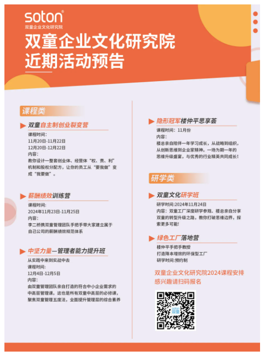 過往的3年,雙童商學院完成了從0到1的成長歷程,贏得了學員和同行企業(yè)的認可與肯定,兩項榮譽的獲得更是對未來的鞭策!從此刻起,雙童商學院全體伙伴將重新出發(fā),從新銳品牌向卓越品牌邁進!