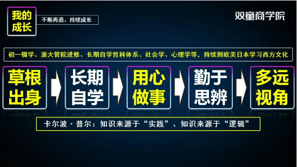 而且幾乎所有的管理學家都在研究大企業(yè),少有人關注小企業(yè),所以他希望雙童商學院能更多的服務于中國的中小民營企業(yè)!