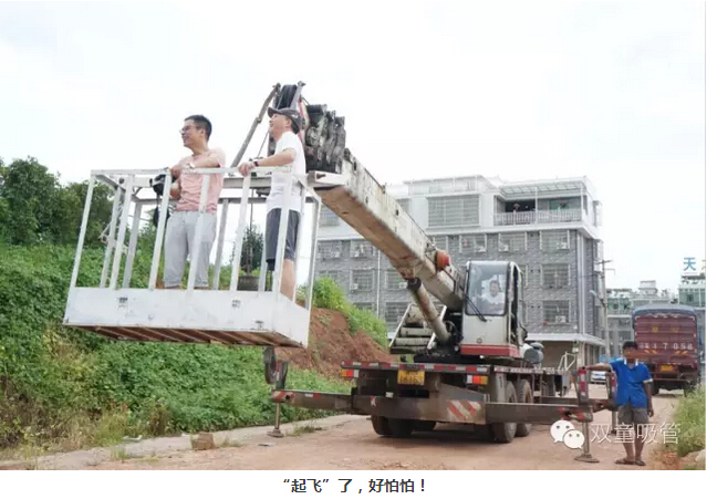 周一的清晨,當(dāng)家人樓總早早地就來到了公司,而在公司門口,還停著一輛大吊機(jī)!用吸管君的話說,這是要搞事情啊!果然,不一會(huì)兒,幾個(gè)拿著專業(yè)攝影機(jī)的攝影師也來到了公司,大家伙一起來到了“雙童”的斜對(duì)面,當(dāng)家人說,我們要隔著北苑路這條大馬路,借助近50米高的大吊機(jī),拍攝“雙童”廠房全景!