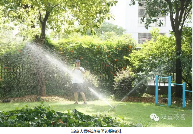 終于拍攝完畢,當(dāng)家人樓總和攝影師們滿意地回到了公司。正值大草坪上正在用噴淋給綠化植物澆水,當(dāng)家人也“雅興大發(fā)”,和攝影師跑入大草坪中,不惜濕身也要拍攝綠化照片!而看到這樣做任何事情都“精益求精”的當(dāng)家人,“雙童”員工們?cè)趺锤覍?duì)工作馬馬虎虎敷衍了事呢?