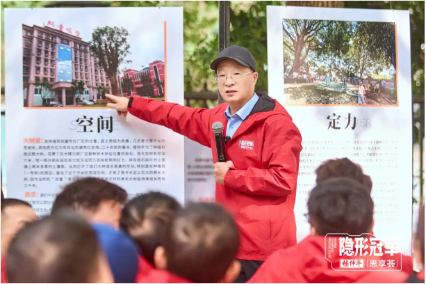 在課程伊始,樓老師先給大家分享這棵大香樟樹背后的種種故事,從節(jié)能降耗系統(tǒng)的“地下機(jī)關(guān)”再到人文關(guān)懷話題,分享這背后所象征的創(chuàng)業(yè)者成長特質(zhì)。同學(xué)們能感知到“一號(hào)樹”更深層次地代表著雙童企業(yè)的精神風(fēng)貌及文化底蘊(yùn)。