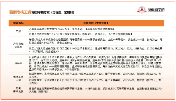 首先在生產(chǎn)相關(guān)崗薪酬績(jī)效方案解讀中,他以雙童生產(chǎn)崗位為案例,詳細(xì)拆解“雙童”在實(shí)際運(yùn)行中針對(duì)不同工種、不同層級(jí)員工績(jī)效考核關(guān)鍵指標(biāo)和整體方案的制定,啟發(fā)學(xué)員對(duì)標(biāo)到自己的企業(yè),參考借鑒。