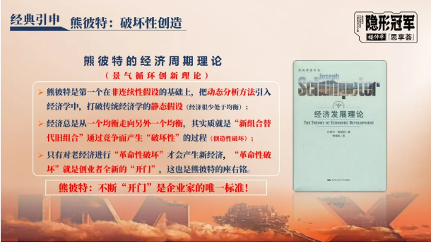 創(chuàng)業(yè)初期,領(lǐng)導(dǎo)需要“身先士卒”。但一旦大門打開后,作為領(lǐng)導(dǎo)者就不應(yīng)該再深陷其中,而是要站在更高的角度,推動、觀察,找到新的發(fā)展方向。創(chuàng)業(yè)者的一生就是不斷“開門”的過程,這正是約瑟夫·彼特所提到的理論。