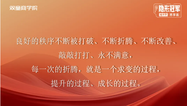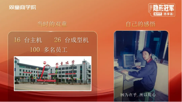 在第三期弟子班第一模塊《認(rèn)知成長“三部曲”》中(點(diǎn)擊獲取原文),樓老師告訴同學(xué)們,所謂成長是“認(rèn)知成長”,只有不斷打破思維的局限,才能實(shí)現(xiàn)認(rèn)知的升級(jí),認(rèn)知的升級(jí)才能帶領(lǐng)企業(yè)的持續(xù)成長!在雙童有一位充滿傳奇的人,躬耕23年,他一步步完成了“一線操作工—基層管理—中高層管理—平臺(tái)總經(jīng)理”的華麗轉(zhuǎn)身,但仔細(xì)觀察就會(huì)發(fā)現(xiàn),他每一次身份的轉(zhuǎn)變背后都伴隨著一次思維認(rèn)知的提升,他就是受樓老師影響最深的“大師兄”—李二橋。所以,課研組也特別邀請(qǐng)他為大家?guī)砹恕度绾卧诰蜆I(yè)中創(chuàng)業(yè)》主題分享,在他解讀自己的成長歷程中,同學(xué)們可以發(fā)現(xiàn),樓老師在課上教授的知識(shí)在一次次的被驗(yàn)證。接下來,讓我們進(jìn)入“大師兄”李二橋的故事……