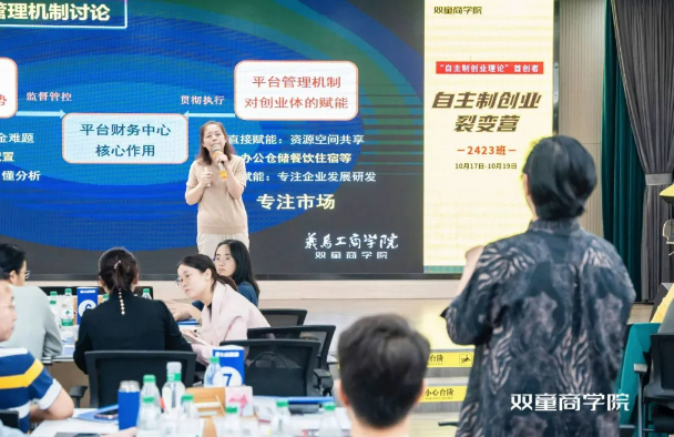 因?yàn)楣镜陌l(fā)展已經(jīng)比較穩(wěn)定,各個(gè)創(chuàng)業(yè)體也如都雨后春筍般發(fā)展起來了。所以在2022年,李二橋在樓總的推動(dòng)下也開始跨界轉(zhuǎn)型,做了講師,后面更是帶動(dòng)雙童其他崗位的管理層一起,把雙童這么多年的管理經(jīng)驗(yàn)進(jìn)行萃取、提煉,通過雙童商學(xué)院的課堂分享給更多的中小企業(yè),幫助大家少踩坑!