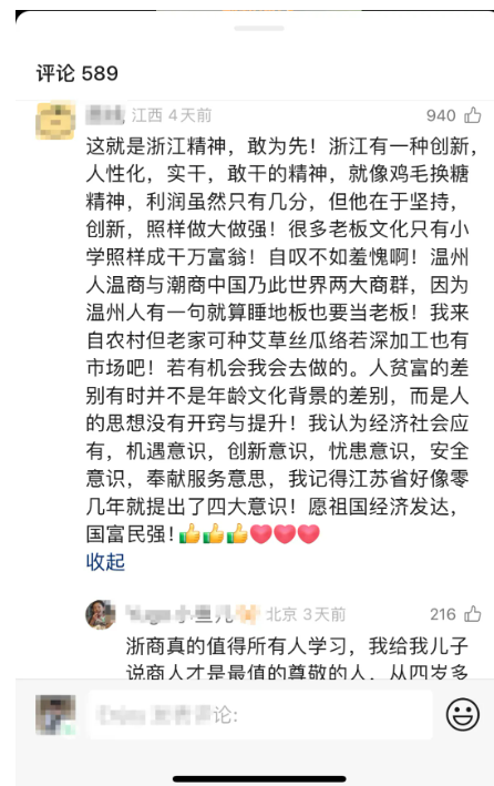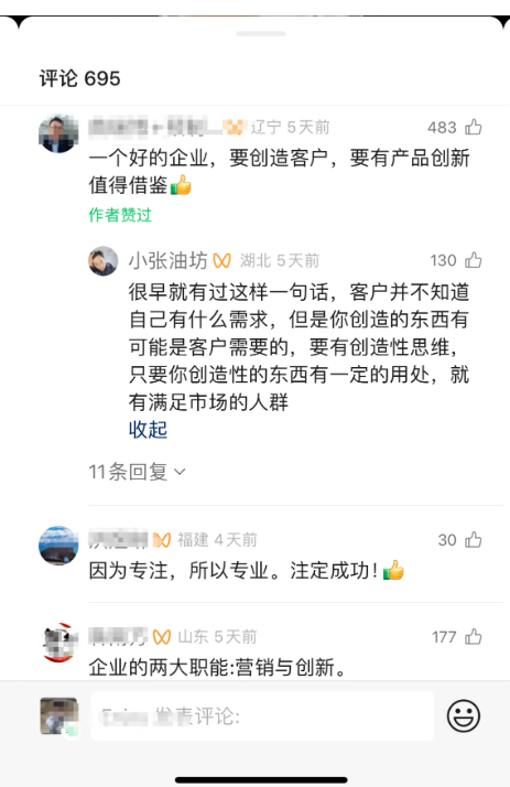 實(shí)際上,這條爆款視頻只是出自《雙童文化研學(xué)班》中一個簡短的學(xué)員游學(xué)片段。在這一分鐘的視頻中,樓總金句頻出,“理解創(chuàng)新的本質(zhì),做價值而非卷價格”“一家好的企業(yè)應(yīng)該能創(chuàng)造顧客”等觀點(diǎn),收獲了眾多網(wǎng)友的認(rèn)可!