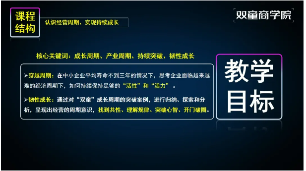 所以本次分享,樓總希望通過(guò)對(duì)自己和雙童成長(zhǎng)周期的案例進(jìn)行歸納、不斷探索和分析,幫助現(xiàn)場(chǎng)的創(chuàng)業(yè)者們?cè)陔p童身上找到共性,理解周期規(guī)律、突破心智、開門破圈,進(jìn)而穿越周期!