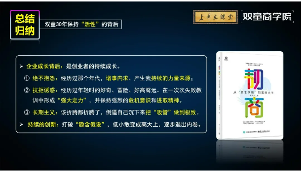 《韌商》也可以算是樓仲平的個人傳記,前期雞毛換糖的寫實記錄。1978-1994年間,他林林總總換了20多個行當,這些經(jīng)歷雖然沒有帶給他物質(zhì)生活的改變,卻讓他意識到了自己的“渺小”,從好高騖遠,轉(zhuǎn)而為“極致專注”,同時也練就了一身“皮糙肉厚”的創(chuàng)業(yè)韌性,這種特質(zhì)也潛移默化的影響了“雙童”這個企業(yè),讓他能夠在之后的30年,屢敗屢戰(zhàn)、屢轉(zhuǎn)屢升,穿越一個個難熬的周期。