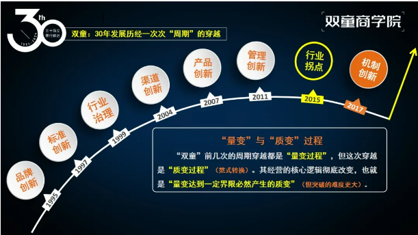 1)2000年,雙童穿越第一個(gè)經(jīng)營(yíng)周期,完成了從作坊企業(yè)到規(guī)范經(jīng)營(yíng)的蛻變。