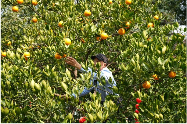 創(chuàng)始人樓仲平也為大家摘胡柚