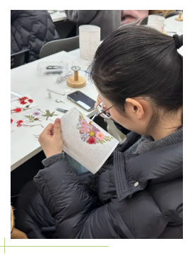 在專業(yè)導(dǎo)師的悉心引領(lǐng)下,大家盡情揮灑創(chuàng)意,靈巧地摘取色彩各異的花朵、翠綠的蕨類等春日元素,巧妙融合,將大自然的靈動韻味捕捉并定格于潔白的絹布之上。