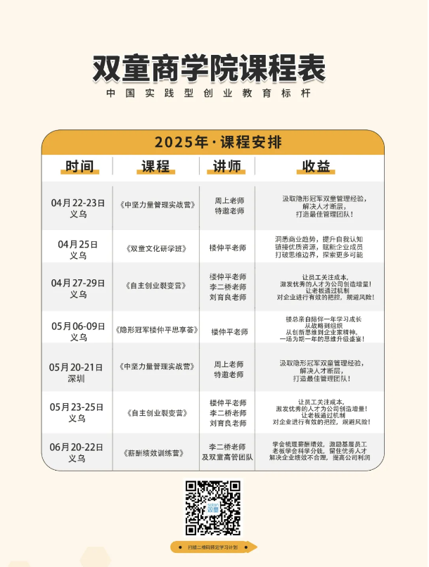 其實,樓仲平老師本次的《韌商:穿越周期、韌性成長》主題分享,也是《雙童文化研學班》下半場課程的精簡版,原版內容將近3個小時,故事更精彩、細節(jié)更豐富!