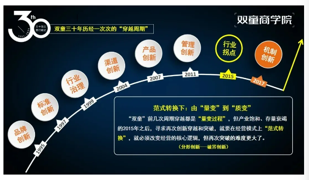 2017年開始,雙童投入巨大精力推進組織機制創(chuàng)新,結(jié)合阿米巴、自主經(jīng)營和內(nèi)部創(chuàng)客等組織機制,進行拆解、組合和實踐測試。