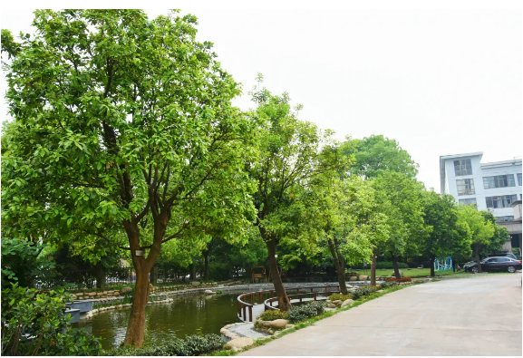 雙童老廠區(qū)景觀池旁的一排就都是柚子樹(shù)