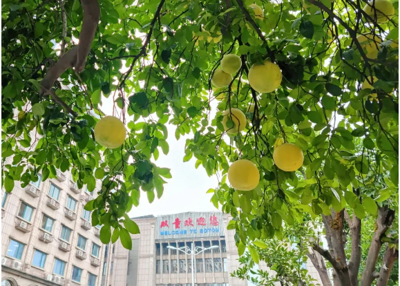 另外一種柚子樹(shù),則是為了滿足員工的口腹之欲的了,這種主要集中在雙童的空中花園里。可食用的柚子種類(lèi)就多了,比如本地的胡柚,掛果率超高,還有鮮甜多汁的葡萄柚、紅美人等等。