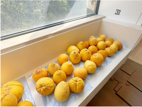 除此之外,柚子皮能夠天然地釋放的芳香物質(zhì)(如檸檬烯),可以掩蓋甲醛的刺激性氣味,所以雙童二樓樣品間一裝修好,它們就被派上了“大用場(chǎng)”,工作人員裝了幾袋墜落的柚子上來(lái),擺在通風(fēng)處,只需要一晚上的揮發(fā),整個(gè)樣品間就變得清新自然起來(lái),比空氣清新劑還好聞~