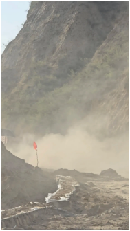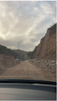 因?yàn)樾旭偟?/span>道路開(kāi)始從柏油路變成坎坷泥濘的土路,一路上顛簸崎嶇不說(shuō),中間有一段路程,更是黃沙漫天、塵土飛揚(yáng),能見(jiàn)度幾乎為“0”!車轍印剛壓出半尺深,轉(zhuǎn)眼就被山風(fēng)卷著砂石填平,如果此時(shí)下車步行的話,估計(jì)沒(méi)走幾步路,“膝蓋骨里都得灌進(jìn)二兩黃土”來(lái)!