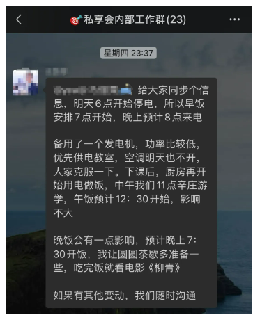 15日晚,結(jié)束了第一天課程學(xué)習(xí)后,課研組突然接到了因?yàn)樾蘼穼?dǎo)致全村次日全天停電的通知。很顯然,這是一個(gè)非常棘手的突發(fā)狀況。