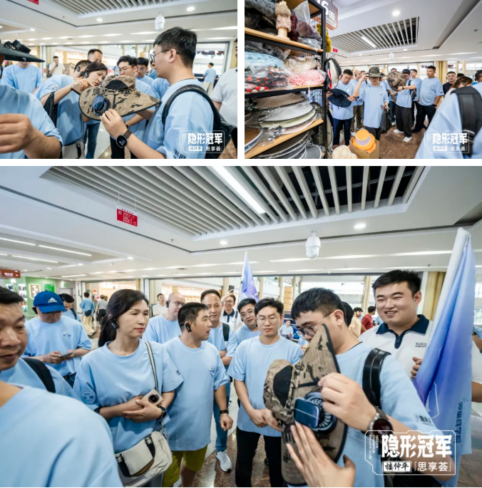 從雙童的商位出來后,樓老師又帶領大家來到了帽業(yè)商區(qū),其中一款太陽能風扇帽就是最近在Tik Tok上瘋狂爆單的新品。通過交流,大家學習到了傳統(tǒng)貿(mào)易如何借助線上線下渠道融合打通,實現(xiàn)行業(yè)爆火增長的實戰(zhàn)經(jīng)驗。