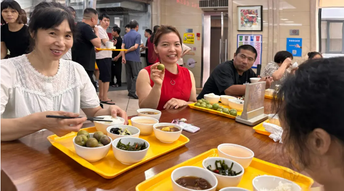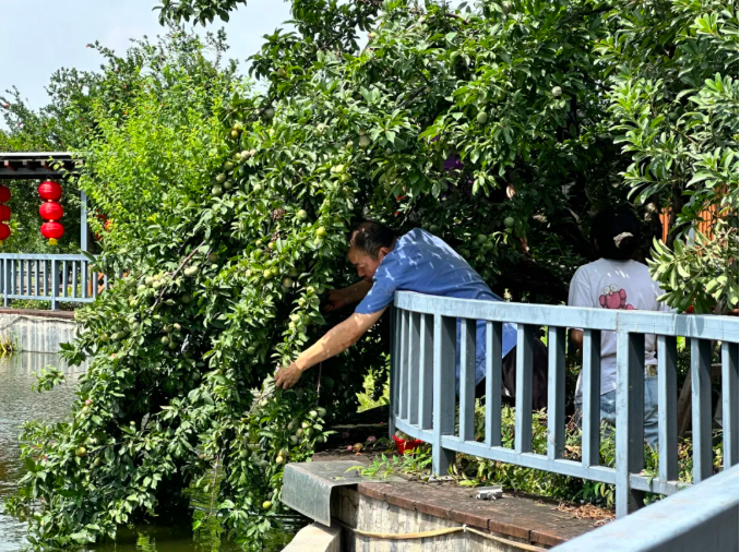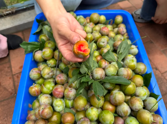 活動(dòng)剛啟動(dòng),人群便沸騰起來(lái):有人架梯登高“強(qiáng)取豪奪”樹(shù)頂?shù)?quot;甜蜜果",有人組隊(duì)圍剿低處的"小可愛(ài)",更有資深食客現(xiàn)場(chǎng)科普:"果皮帶裂縫的才是‘糖心炸彈’,那種才甜!"歡聲笑語(yǔ)中,竹籃里的李子逐漸堆成小山,甚至李子都快溜出來(lái),裝不下了。