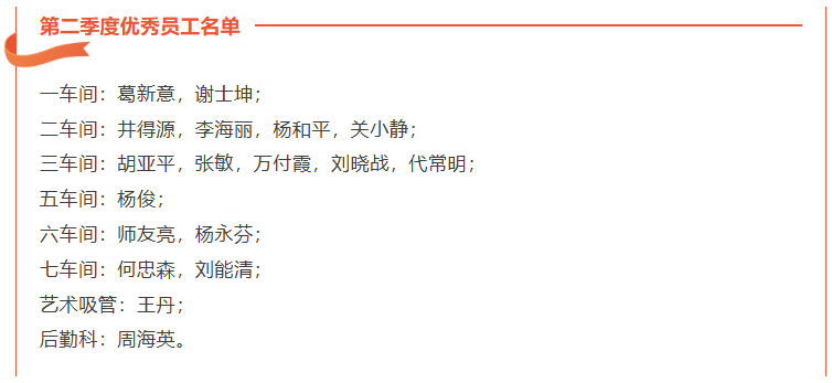 第二季度優(yōu)秀員工名單