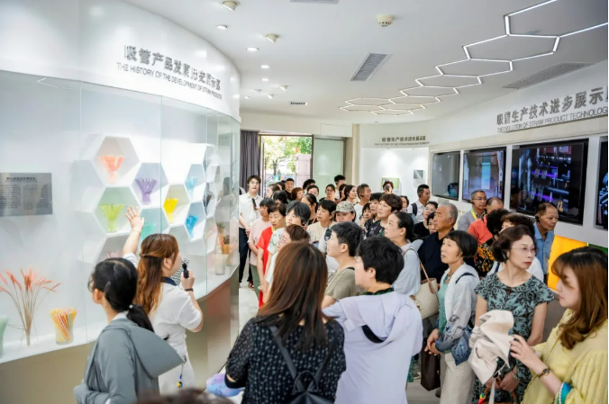 在專業(yè)講解員的陪同下,游學(xué)團(tuán)參觀了中國吸管博物館。這個獨具匠心的展館不僅系統(tǒng)展示了吸管行業(yè)的發(fā)展歷程,更陳列著各式創(chuàng)意十足、色彩斑斕的吸管展品,令在場游學(xué)團(tuán)成員連連稱奇。