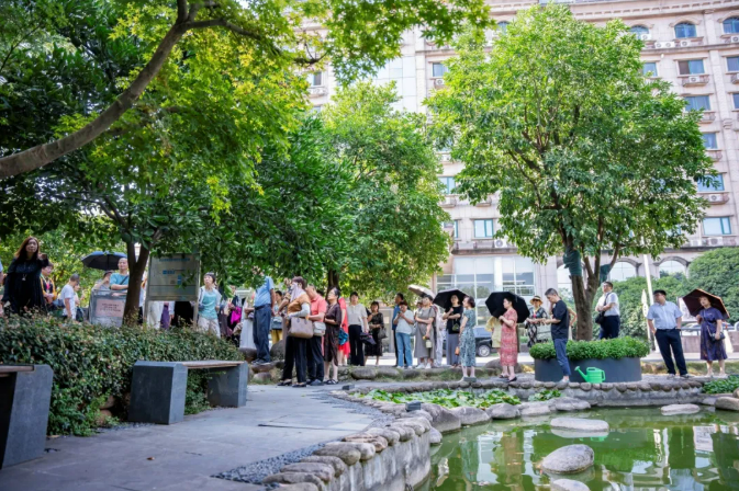 走出建筑大樓,講解員又帶領(lǐng)大家詳細(xì)參觀了雙童建于20多年前的“節(jié)能降耗系統(tǒng)”,包含了雨水收集回用系統(tǒng)、廢水處理回用系統(tǒng)、設(shè)備余熱采集循環(huán)系統(tǒng)等,以及使用性與觀賞性完美統(tǒng)一的“雙童湖”和“一號樹”,微風(fēng)拂過,帶來陣陣荷香。