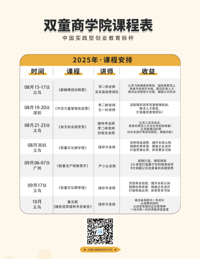 如果你也對“雙童”充滿好奇,也想賦能團(tuán)隊共同成長,歡迎走進(jìn)8月30日【雙童文化研學(xué)班】,與上百位優(yōu)秀的創(chuàng)業(yè)者一起學(xué)習(xí)!少量名額,歡迎咨詢鎖定!
