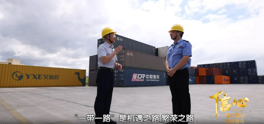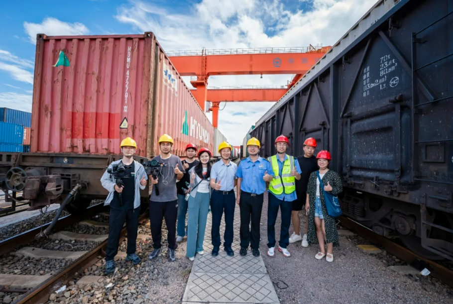 樓仲平在節(jié)目組在中歐班列處合影