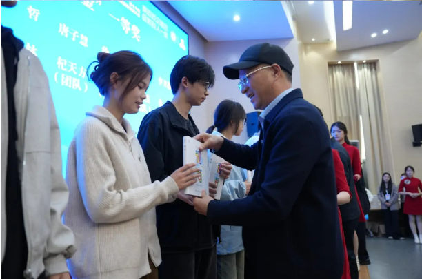 樓仲平為獲獎(jiǎng)學(xué)生頒獎(jiǎng)