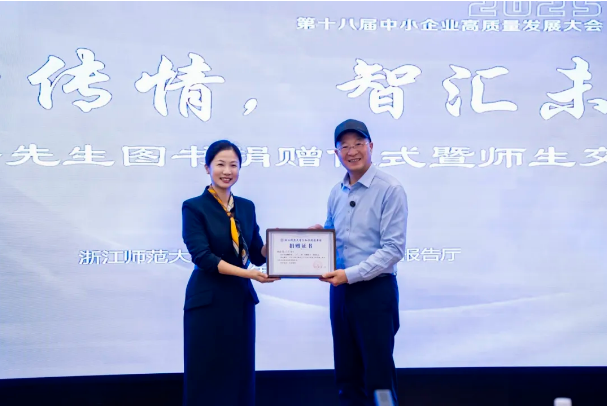 頒獎(jiǎng)儀式結(jié)束后,浙江師范大學(xué)行知學(xué)院舉行了“書(shū)香傳情,智匯未來(lái)”圖書(shū)捐贈(zèng)儀式。儀式上,學(xué)院圖書(shū)館館長(zhǎng)吳建軍、浙江師范大學(xué)行知學(xué)院副院長(zhǎng)蔣芬君共同代表學(xué)校,接受樓仲平捐贈(zèng)的300本個(gè)人自傳《韌商》,并向他頒發(fā)捐贈(zèng)證書(shū)。校方表示,這些書(shū)籍將部分上架供師生借閱,部分用于院史館展出和地方特藏庫(kù)珍藏,以期充分發(fā)揮其傳播與珍藏價(jià)值。一時(shí)間,現(xiàn)場(chǎng)掌聲如潮,氣氛熱烈。