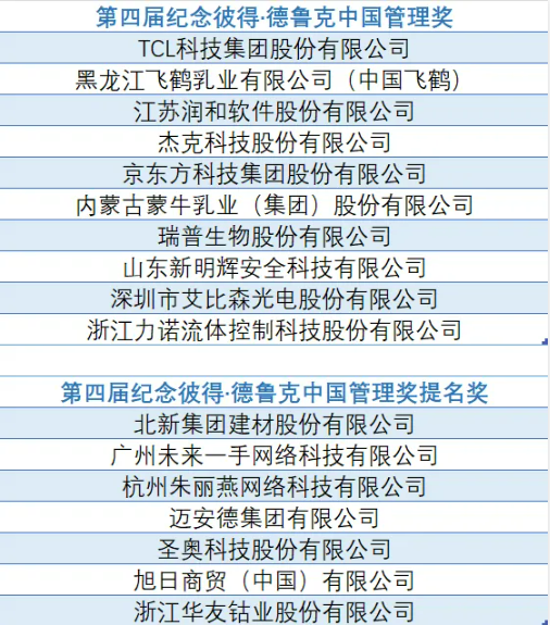 “2021紀念彼得·德魯克中國管理獎”獲獎名單