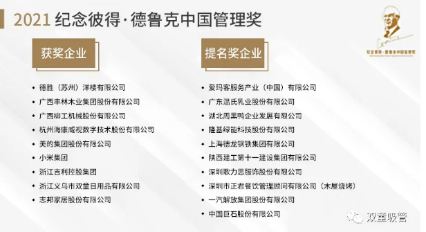 2021雙童榮獲“紀念彼得·德魯克中國管理獎”