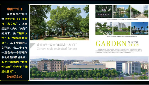 同樣,雙童花園式社區(qū)工廠的建設(shè),其本質(zhì)上也是基于人類(lèi)對(duì)“美好”的追求,是“順應(yīng)人性”下的“情緒價(jià)值管理”。樓仲平希望通過(guò)打造人與自然、生產(chǎn)與生活和諧共生的空間,以增強(qiáng)員工的歸屬感和幸福感,從而激發(fā)員工的善意。