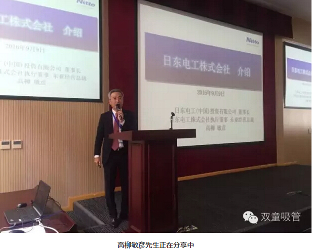 第一位分享嘉賓是連續(xù)5年被選入湯森路透“全球百?gòu)?qiáng)創(chuàng)新企業(yè)機(jī)構(gòu)2015”排名榜的日東電工(中國(guó))投資有限公司董事長(zhǎng)高柳敏彥。他通過(guò)日文翻譯向在座各位作了《百年企業(yè)創(chuàng)三新之路》的演講,講解了日東電工幾十年發(fā)展歷程中如何“靠一招鮮創(chuàng)新”。