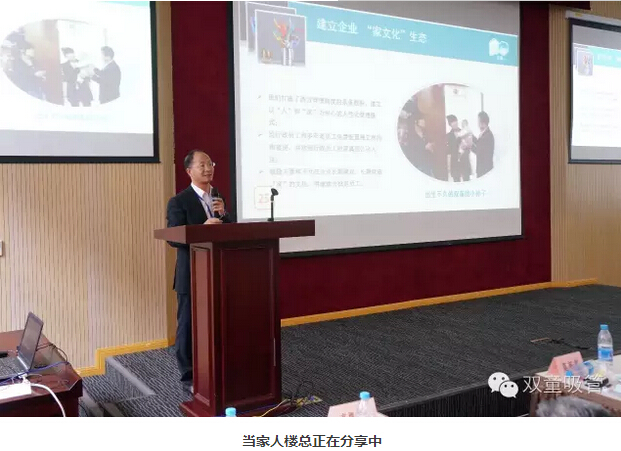 接下來(lái)就是我們的當(dāng)家人樓總的分享時(shí)間啦!本次樓總的演講主題是《隱形冠軍背后的“匠人思維”》,由于時(shí)間關(guān)系,樓總把原本需要半天講完的課程壓縮到了45分鐘,精煉地介紹了“雙童”的人本經(jīng)營(yíng)理念和在企業(yè)經(jīng)營(yíng)過(guò)程當(dāng)中他認(rèn)為要堅(jiān)持的三顆心:初心、恒心、平常心,講述了他如何22年堅(jiān)持只做一根吸管,靠一根吸管打天下的背后故事。演講過(guò)程中,樓總坦言要把“雙童”做成百年老店的豪言也得到了大家一致的掌聲和鼓勵(lì)。