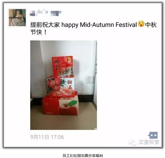 “雙童”的福利可不止這次中秋而已哦!下面是幾張以往節(jié)日時(shí),我們“雙童”人發(fā)放福利的現(xiàn)場(chǎng)照片,咳咳,看看就得了,口水就不要流了……親愛(ài)的粉絲們,你們是不是羨慕嫉妒恨呢?快來(lái)曬曬你的福利吧!祝大家中秋快樂(lè)!