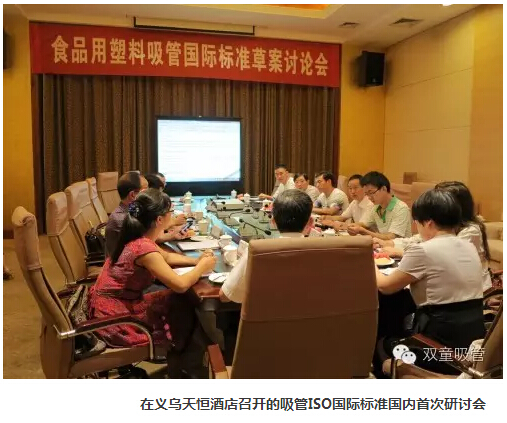 2012年7月24日,由國家塑料制品標準化技術(shù)委員會和“雙童”公司召集國內(nèi)吸管行業(yè)的十多家生產(chǎn)企業(yè),在義烏市天恒酒店召開ISO國際標準國內(nèi)分組研討會。會上集中討論了由“雙童”提交的吸管ISO國際標準草案初稿,決定采用屬地原則的有利條件,在中國《聚丙烯飲用吸管》國家標準的基礎(chǔ)上進行ISO國際標準的條文延伸和編輯,以最大程度上有利于中國吸管行業(yè)的健康發(fā)展。