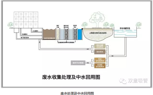 最后經(jīng)過處理的水就已經(jīng)達(dá)到了三類水的標(biāo)準(zhǔn),中水通過設(shè)在池中的抽水泵打到屋頂,專門用于宿舍衛(wèi)生間的馬桶沖水、綠化澆灌和道路清洗。