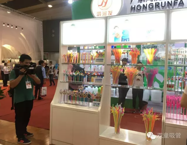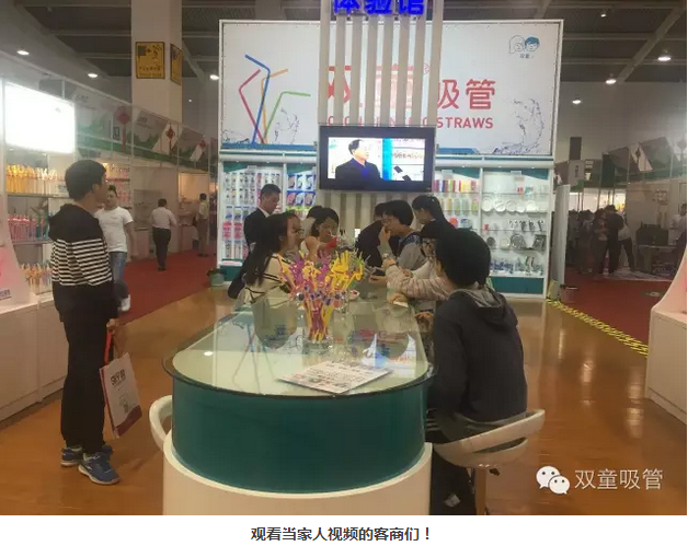 經(jīng)過雙童經(jīng)過的客商基本都會留下腳步。原來是雙童展位的正中央掛著一臺大尺寸的電視機(jī),不間斷的滾動播放當(dāng)家人接受的各類節(jié)目采訪,以及各類媒體對雙童吸管進(jìn)行報道的視頻!看來咱們當(dāng)家人的魅力還真是大呀!