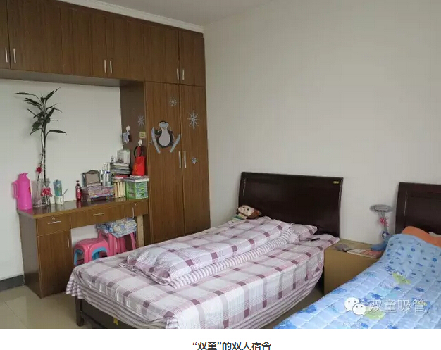 而當(dāng)大家來到最期待的員工寢室時(shí),同學(xué)們的反應(yīng)也是在吸管妞的意料之中。每個(gè)房間都配有干凈整潔的洗手間、寬敞明亮的洗衣陽(yáng)臺(tái),并配有各種家具,每個(gè)房間安裝有空調(diào),24小時(shí)供應(yīng)熱水洗澡和純凈飲用系統(tǒng)。驚羨之聲隨處可聽。當(dāng)吸管妞和同學(xué)們說,我們寢室的衛(wèi)生工作都是由清潔阿姨打掃的,連垃圾桶都不用倒!他們紛紛自薦:我要來“雙童”實(shí)習(xí)!
