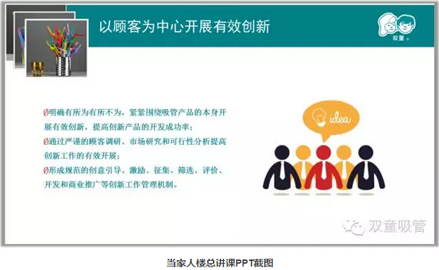 首先,當(dāng)家人樓總對(duì)“雙童”過(guò)去的五年發(fā)展規(guī)劃,及“雙童”發(fā)展前后十年進(jìn)行了對(duì)比與總結(jié)。2005年,“雙童”提出了第一個(gè)五年發(fā)展規(guī)劃,其中提到了三個(gè)關(guān)鍵詞“專注發(fā)展”、“創(chuàng)新提升”、“資源最大化”,在這期間,“雙童”始終堅(jiān)持以小博大的理念,沒有貪大求全,急功近利,專注做好一根吸管。