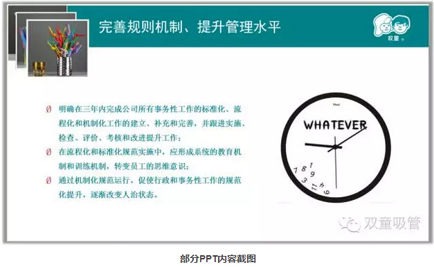 學(xué)習(xí)會(huì)進(jìn)行到最后,童鞋們對(duì)“雙童”未來(lái)的五年發(fā)展規(guī)劃都了然于心,接下來(lái)我們會(huì)從各個(gè)方面著手,提升品質(zhì)、開展有效創(chuàng)新、完善規(guī)則機(jī)制!吸管妞也相信做好這幾點(diǎn),“雙童”的未來(lái)五年一定會(huì)大變樣!