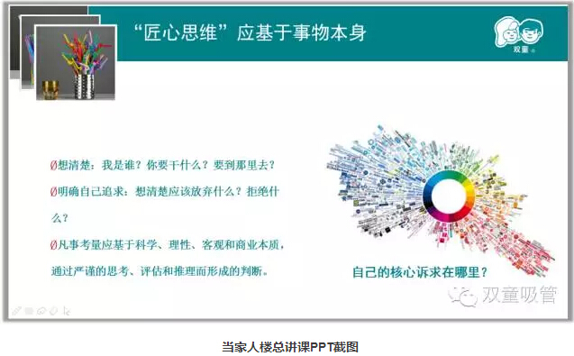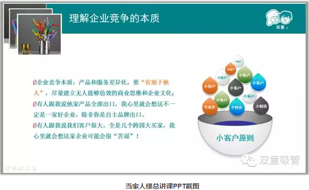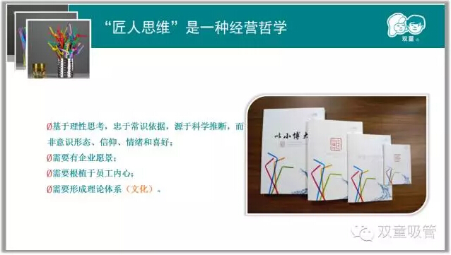 首先,當(dāng)家人樓總分享了自己30多年的創(chuàng)業(yè)經(jīng)歷,在不斷失敗的教訓(xùn)中,他選擇了把一根吸管做精、做細!通過二十多年積累,“雙童”初步形成了專注經(jīng)營、創(chuàng)新進取、綠色低碳、和諧共贏和精細化管理的發(fā)展理念,“雙童”也發(fā)展的越來越好!而這些都離不開“匠心”。