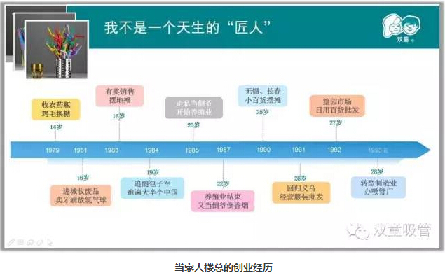 1994年4月,偶然的機(jī)會(huì)讓我再次選擇“一根小吸管”作為重新創(chuàng)業(yè)的起步,無數(shù)次的創(chuàng)業(yè)失敗使我在經(jīng)營(yíng)“雙童”之后選擇了更多的堅(jiān)守和專注,從而逐漸拋棄了一夜暴富的急功近利,減少了唯利是圖的投機(jī)心理,深刻認(rèn)知到創(chuàng)辦企業(yè)的意義所在,始終關(guān)注事物本身,全身心投入把事情做到更好。