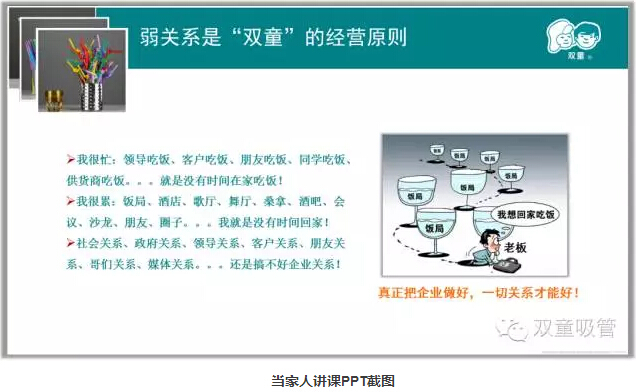 另一方面,在當家人樓總離開企業(yè)的時候,無論是一個禮拜、一個月、甚至一年半載的時間,員工都不會打電話給他。企業(yè)內(nèi)部的事情都有專人處理,做到了徹底放權,企業(yè)也不會因此受到影響,反而當家人樓總現(xiàn)在以企業(yè)內(nèi)部教育和外部講課為主!