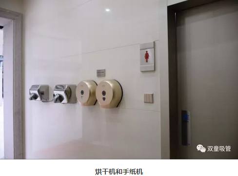 進(jìn)入衛(wèi)生間前,員工可以在手紙區(qū)取紙巾,無論是哪個衛(wèi)生間,都配備了手紙。不僅如此,我們還配備了專業(yè)的烘干機(jī),讓員工們可以烘干洗干凈的濕手。